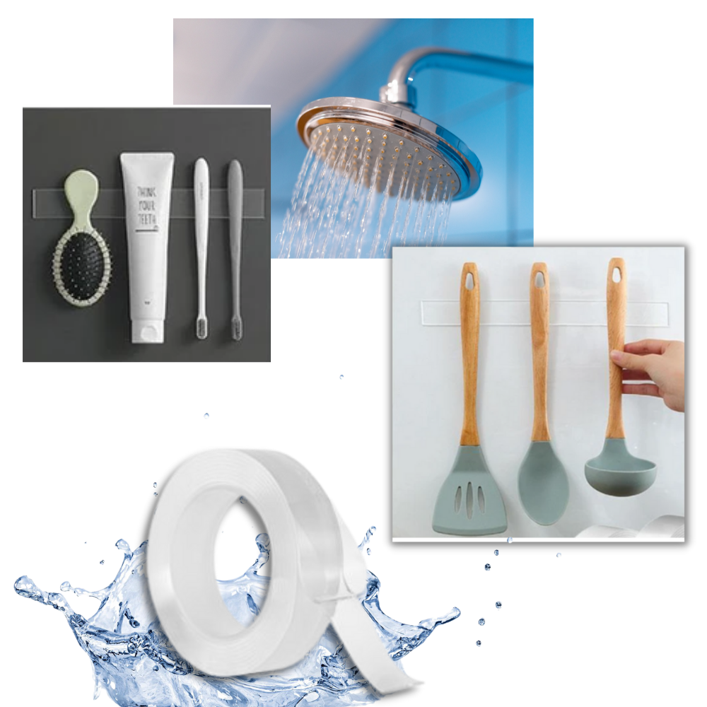 Usa il nastro magico nel bagno, in cucina, o nel tuo corridoio. È impermeabile e quindi non risente dell'umidità e degli spruzzi d'acqua. Questo lo rende adatto per articoli da toilette e oggetti decorativi in stanze dove l'umidità è alta.
